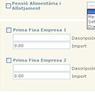 - Possibilitat de definir diferents tipus de salari (horari, mensual, unitat d'obra), primes, avantatges materials.